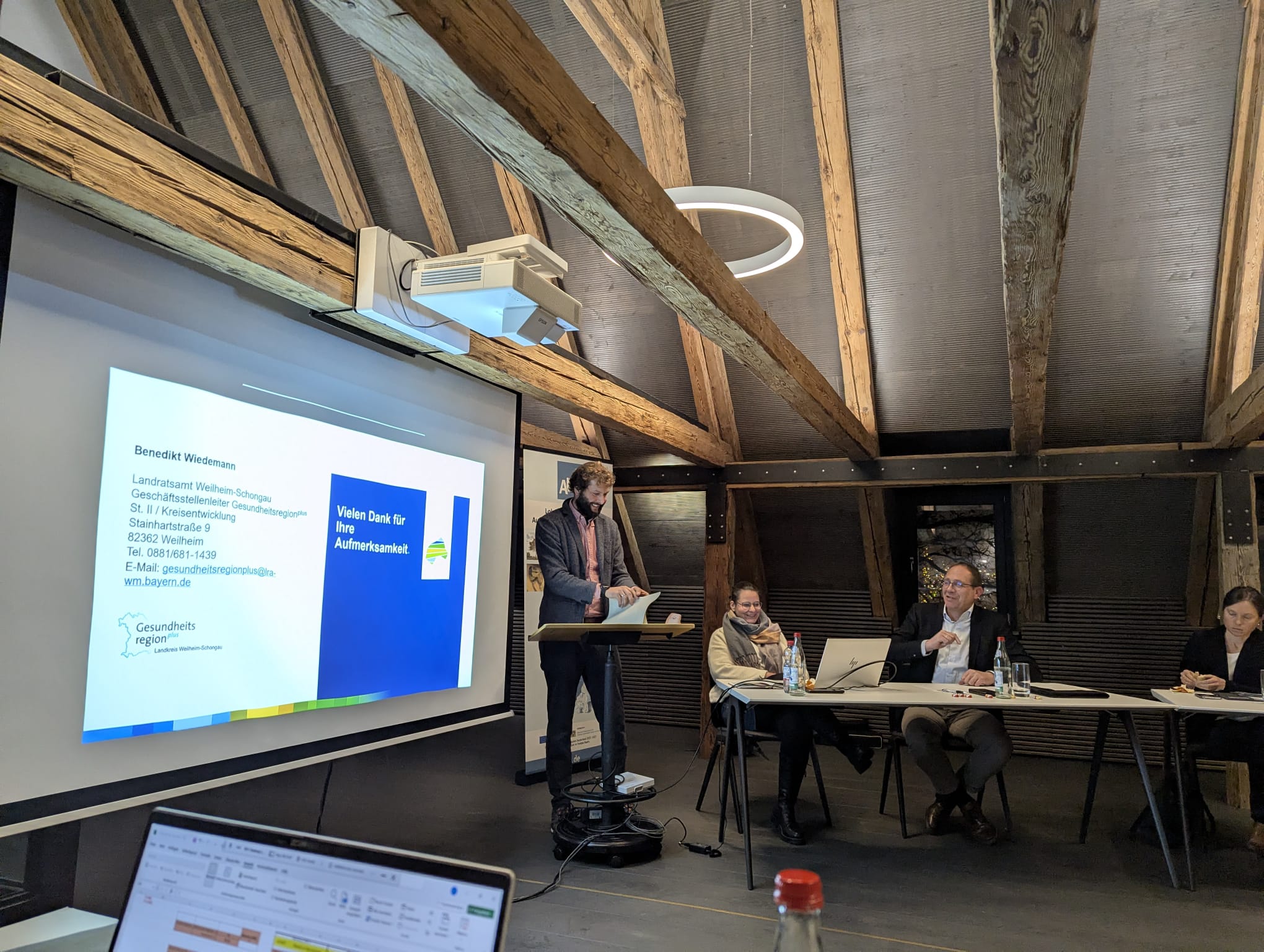 Die Gesundheitsregion Plus Weilheim-Schongau widmet sich der Gesundheitsversorgung im ländlich geprägten Landkreis. Mit dem Projekt „HerzNotfallhilfe Weilheim-Schongau“ soll die Notfallversorgung bei plötzlichem Herzstillstand in der Region verbessert werden. Mit der LEADER-Förderung in Höhe von 55.711,57 Euro können nun 45 öffentlich zugängliche Automatisierte Externe Defibrillatoren (AEDs) zentral beschafft werden. Benedikt Wiedemann, Geschäftsstellenleiter der Gesundheitsregion Plus, erläuterte das Vorhaben, das mit Schulungen für Multiplikatoren in den beteiligten Gemeinden und eine breite Öffentlichkeitsarbeit über die Anwendung und die Standorte der neuen AEDs flankiert wird, um auch die Bevölkerung für das Thema zu sensibilisieren.